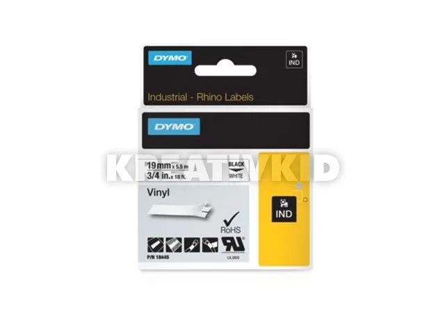 Feliratozógép szalag, vinil, 19 mm x 5,5 m, DYMO "Rhino", fehér-fekete