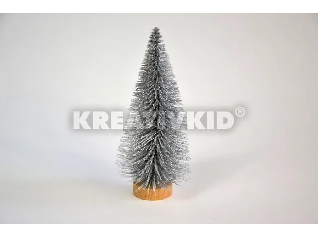 Fenyőfa ezüst glitteres fa talppal 10 cm 3 db/cs