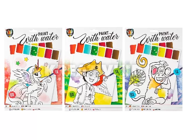 Fess vízzel, 8 lap, A4 méret, ecsettel Unikornisos