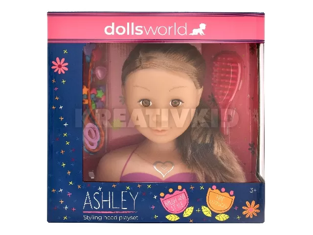 Fésülhető babafej sok kiegészítővel, barna Ashley
