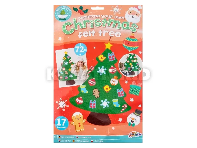 Filc karácsonyfa, 17 ráakasztható dísszel, 72 cm magas