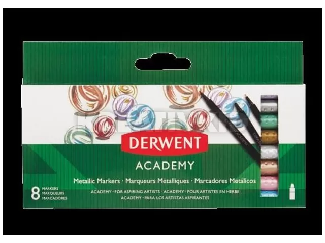 Filctoll készlet, DERWENT, "Academy", 8 különböző metál szín