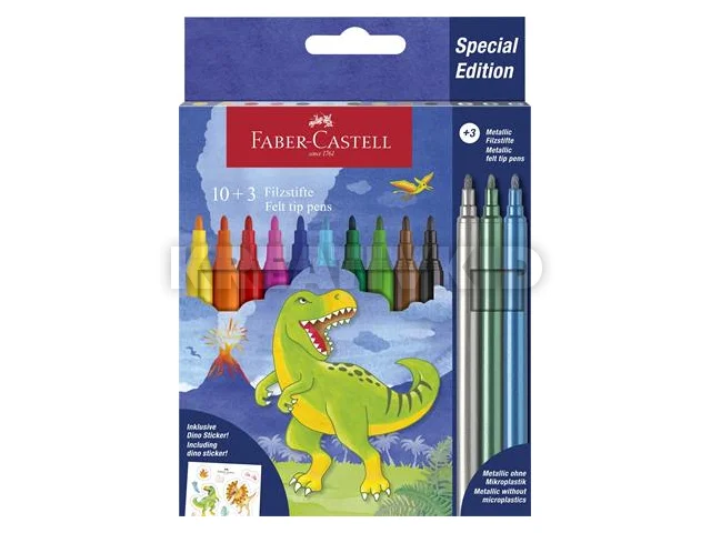 Filctoll készlet, FABER-CASTELL "Dinoszaurusz" 10 különböző szín + 3 metál