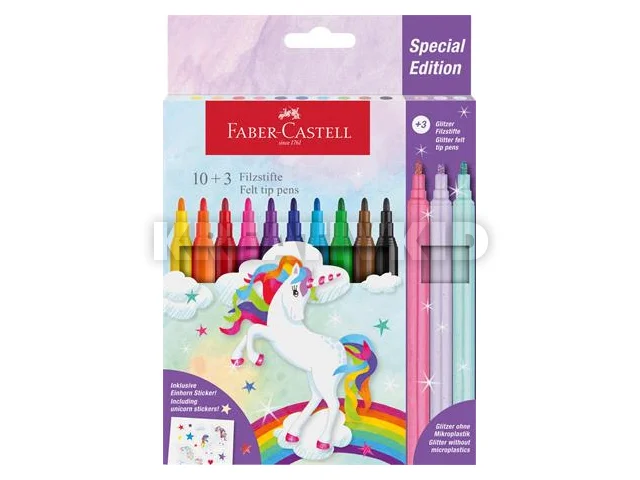 Filctoll készlet, FABER-CASTELL "Unikornis" 10 különböző szín + 3 csillámos