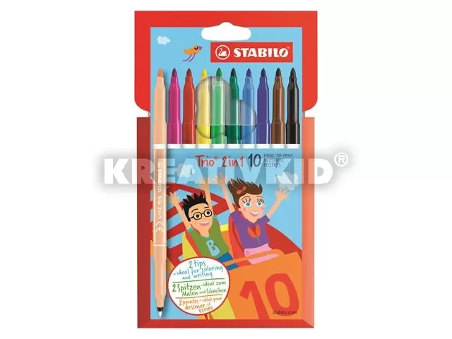 Filctoll készlet, 0,5-2 mm, kétvégű, STABILO "Trio 2 in 1", 10 különböző szín