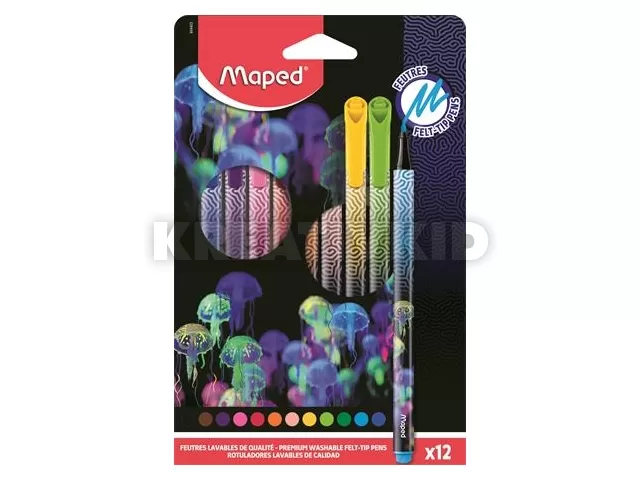 Filctoll készlet, 0,8 mm, kimosható, MAPED "Deepsea Paradise", 12 különböző szín