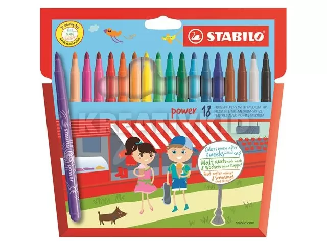Filctoll készlet, 2 mm, STABILO "Power", 18 különböző szín