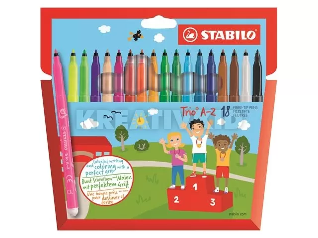 Filctoll készlet, 0,7 mm, STABILO "Trio A-Z", 18 különböző szín