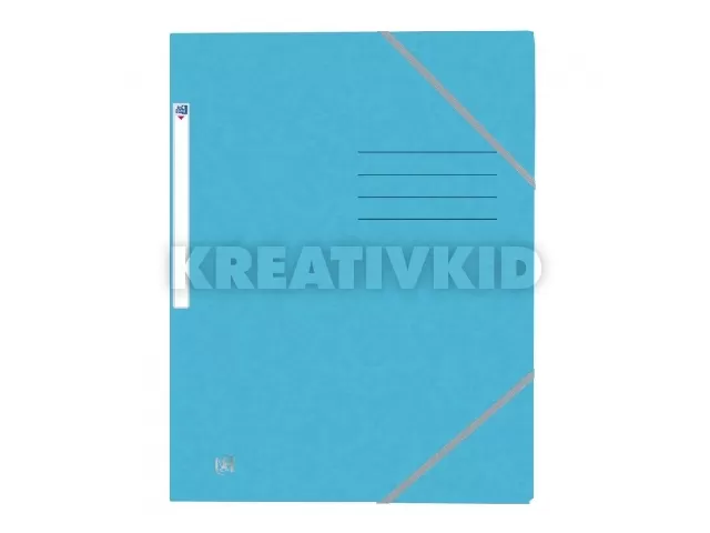 Top File gumis mappa A4, pólyás, 390 g/m2-es vastagságú, MultiStratTM technológiával készült többrétegű kartonból, feliratozható, gumiszalaggal záródik, világoskék színű. A MultiStratTM technológia biztosítja a víz- és szennyeződésálló felületet, valamint a hajlítás-, törés- és szakadásállóságot. PEFC minősítéssel.