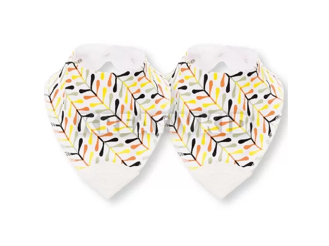 A háromszög alakú nyálkendõ rágókával nagyszerû 2 az 1-ben funkciót kínál. Egyrészt a baba rághatja a kendõt a fogzás során, és így fogzást segítõként szolgál, másrészt a nyálkendõ nedvszívó anyaga segítségével a ruhái tiszták maradnak. A nyakrészben található patentoknak köszönhetõen az elõke egyszerûen együtt nõ gyermekével.