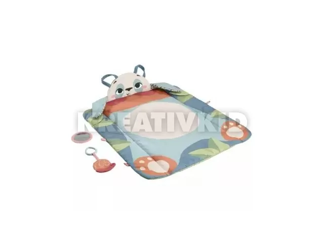 Ez az imádnivaló, panda mintával díszített játszószőnyeg közel 90 cm hosszú. A 3 az 1-ben matrac mind hanyatt, mind hason fekvő játékokhoz ideális, emellett az utazások során is szórakoztathatja a kicsiket. A mellékelt tükör és rágóka játékra hívja a piciket. A játék 90%-ban újrahasznosított anyagokból készült.