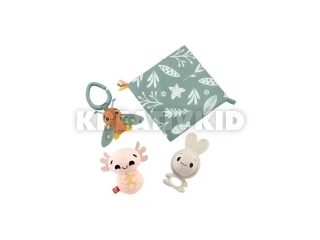 Fisher-Price: Sensimals - Helló Érzékelés játékszett, 4 db-os. A csomagban egy nyuszi rágóka, egy csörgő axolotl és 2 db hordozható, rögzíthető játék található. Újszülött kortól ajánljuk.