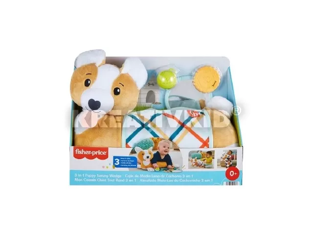 A Fisher-Price nőj velem pici poci corgi plüss barát segíti a babát, amikor hátról hasra fordul, támasztja, amikor elkezd felülni, vagy utazás közben játszik. A csomag része egy dupla oldalú takaró és három játék, köztük egy tükör, amit a kutyusra és a játszószőnyegre is erősíthetsz. A kicsik imádják felfedezni az érdekes anyagokat és hangokat. A játék a kiegészítők eltávolítása után mosógépben mosható.