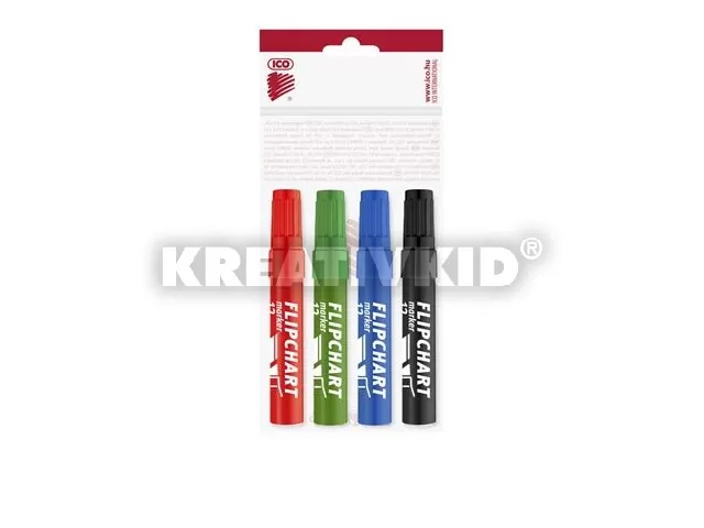 Flipchart marker készlet, 1-4 mm, vágott, ICO "Artip 12", 4 különböző szín