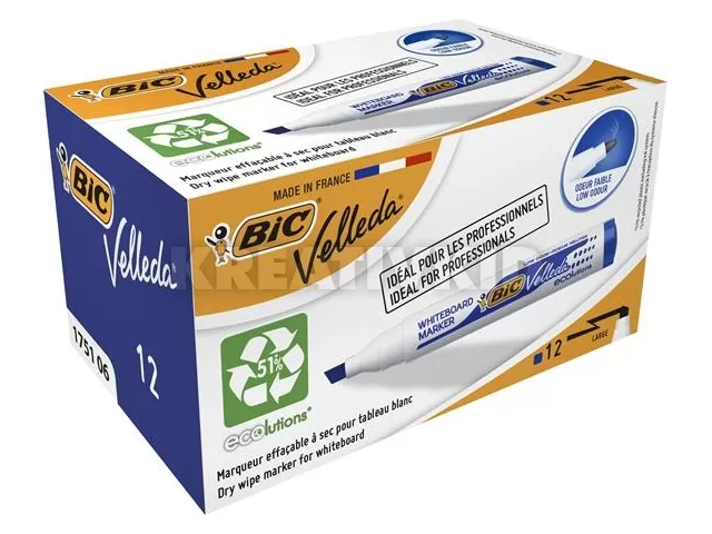 Flipchart- és táblamarker, 1,1-5,6 mm, vágott, BIC "Velleda ecolutions", kék