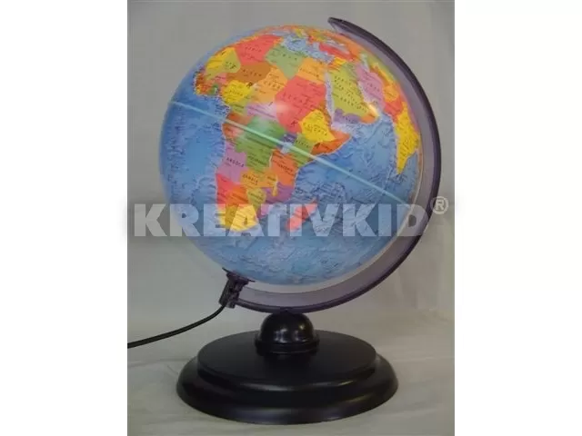 Politikai és hegy-vízrajzi, világítós földgömb, műanyag talppal.