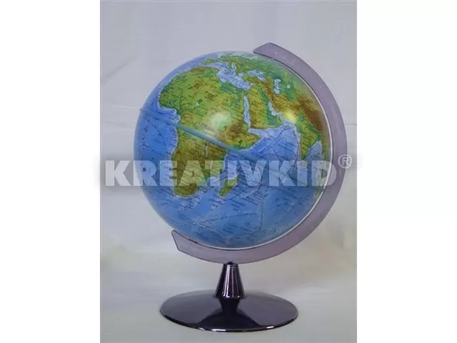 A hagyományos, 25 cm átmérőjű hegy-vízrajzi földgömb az aktuális földrajzi állapotot mutatja, a hivatalos domborzati színezéssel és feliratokkal: a közel 3000 magyar nyelvű földrajzi névvel. Stabil, fekete műanyag talppal. A precíz kialakítás a terméket alkalmassá teszi iskolai oktatóeszköznek, de otthoni használatra és lakásdísznek is.