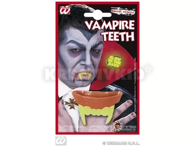 Sötétben foszforeszkáló vámpírfog, egy méretben.