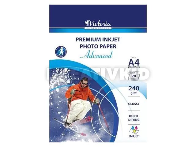 Fotópapír, tintasugaras, A4, 240 g, fényes, VICTORIA PAPER "Advanced
