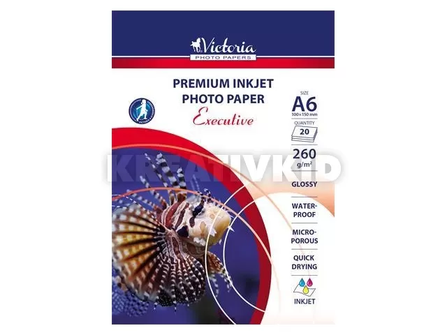 Fotópapír, tintasugaras, A6, 260 g, magasfényű, VICTORIA PAPER "Executive