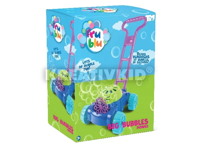 TM Toys - FRU BLU fűnyíró + utántöltő 0,5 l, bekapcsolt állapotban milliónyi buborékot bocsát ki. Népszerű játék vonzó színekben. A FRU BLU buborékok óriási méretűek és hihetetlen formájúak. A szivárvány minden színével ragyog.
