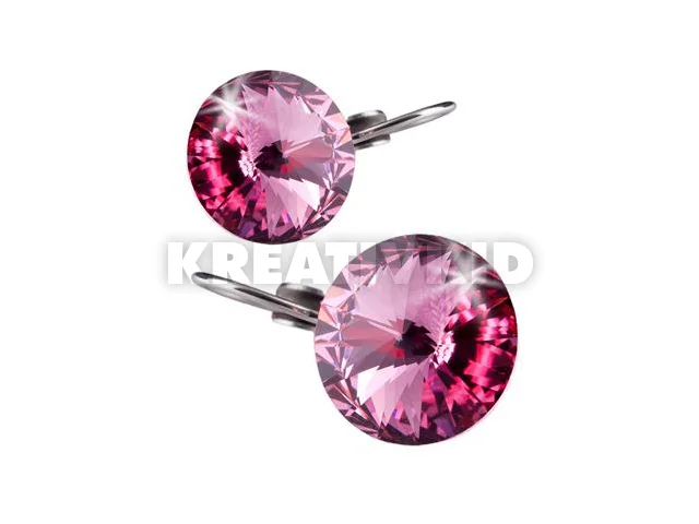 Fülbevaló, francia kapcsos, rózsaszín SWAROVSKI® kristállyal, 12mm, ART CRYSTELLA®