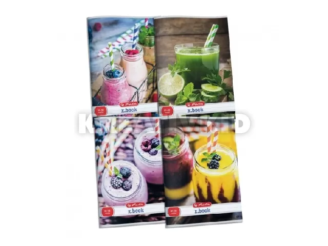 A4-es méretű, 32 lapos vonalas iskolai füzet Smoothie, mintás fedlappal, hófehér belívvel. Az x.book termékcsalád része, 4 mintával.