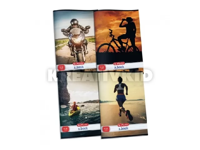 A4-es méretű, 32 lapos, vonalas iskolai füzet Sport, mintás fedlappal, hófehér belívvel. Az x.book termékcsalád része, 4 mintával.