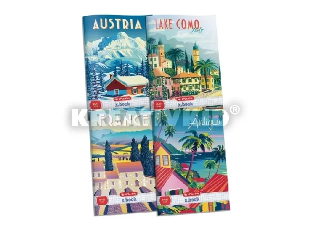 A4-es méretű, 32 lapos, 87-32-es kockás iskolai füzet Travel, mintás fedlappal, hófehér belívvel. Az x.book termékcsalád része,