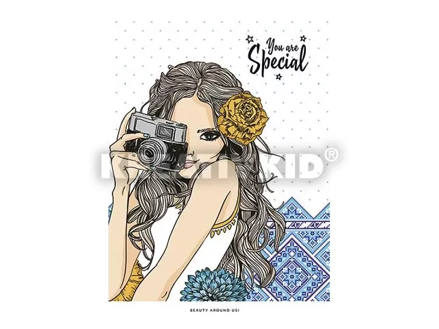 Füzet, tűzött, kockás, A5, 80 lap, SHKOLYARYK, "You are special", Fényképezőgép