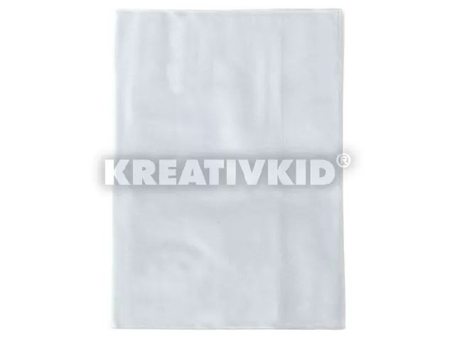 A4-es méretű füzetborító, 27,7x41,8 cm-es méretben, színtelen víztiszta PVC, 90µ, 10 db/csomag.