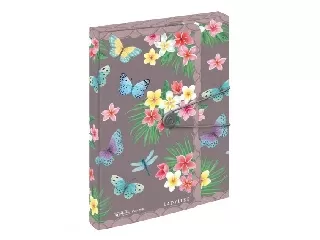 A/5 méretű füzetbox. Kemény, tartós kartonból, 4 cm-es gerinccel, fényes fóliával, 7 mm széles gumipánttal. Belseje egy színnel nyomott. Füzetek, irat...