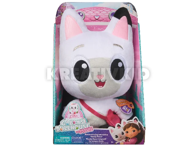 Hozd haza a Gabbys Dollhouse: The Movie varázsát a nyávogó interaktív Pandy Mancsokkal! A 33 cm magas beszélő bugyi egy elbűvölő plüss négy szövetkiegészítővel, köztük egy puha gallérral és egy levehető táskával. Pandy minden kalandra készen áll. Csak szorítsa meg a mancsát vagy ringassa meg, hogy aktiválja a Gabby-film több mint 20 izgalmas hangeffektusát, zenéjét és kifejezését. A Meow Tech segítségével Pandy szinkronizálni fogja a Gabby Meow-mazing Interactive Dollhouse és a Gabby's Meow-mazing Interactive Ears animációit és hangját, fokozva a játékidőt a macskás fantasztikus interaktív élményekkel. Ez a készlet szórakoztató módja annak, hogy színlelt játékra és nyávogó felfedezésre inspiráljon a gyermekeknek szánt imádnivaló Gabby macskajátékokkal. A Gabbys babaház játékok doromboló ajándékok a gyerekeknek, hogy újra átéljék a dédelgetett Gabby-filmes pillanatokat, és új kalandokat találjanak ki Gabby babaházában, kisgyermekes játékokkal és lányoknak szánt játékokkal, például babaház kiegészítőkkel és bútorokkal, nyávogó macskabarát plüssökkel, sellő játékokkal és macskaízű tanulási játékokkal (mindegyik külön kapható)