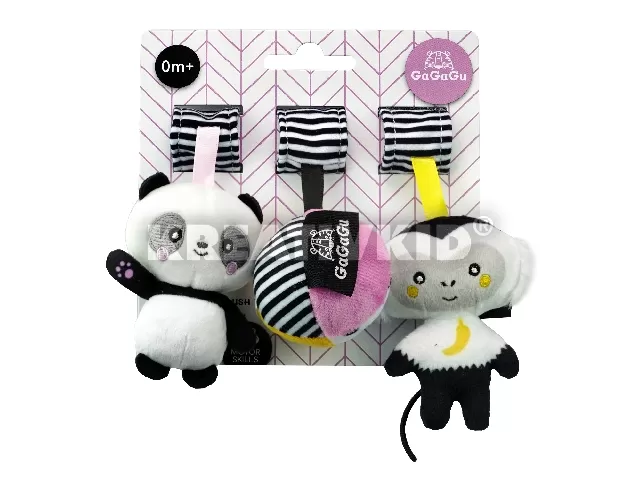 A játékok levehetők - egyesével babakocsihoz vagy gyerekágyhoz köthetők, vagy más GAGAGU termékekhez (például a Játszószőnyeghez).