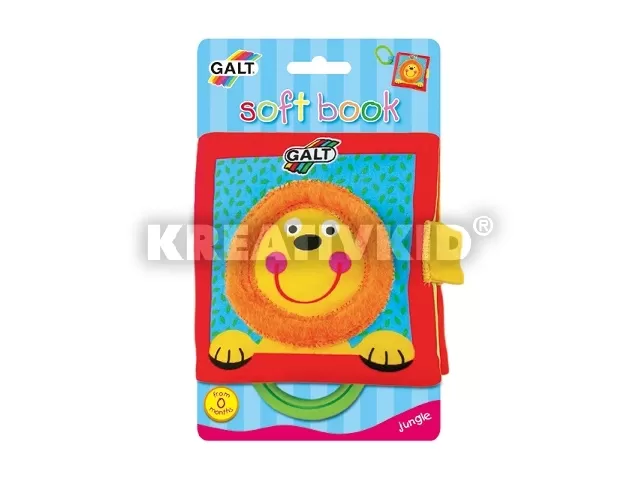 Színes, lapozgatható, 8 oldalas textilkönyv a Galt bébijátékok termékcsaládjából.