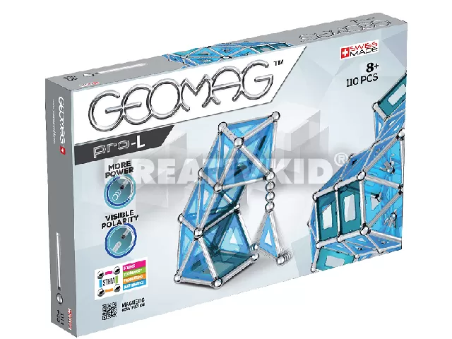 A Geomag Pro-L 110 darabos szettje ezüst és kék árnyalatú