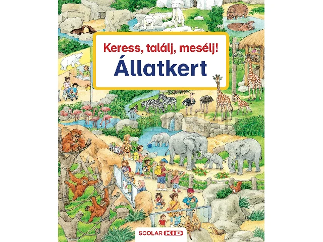 Voltál már állatkertben? Itt találkozhatsz kedvenc állataiddal, és megismerhetsz sok újat is. A könyv tizenegy részletgazdag képét böngészve a kisgyerekek részesei lehetnek az állatkerti látogatásnak.A Keress, találj, mesélj! sorozat készítői minden oldalpár szélén kiemeltek néhány tárgyat, élőlényt vagy személyt, melyeket a gyerekek megkereshetnek az adott oldalpár nagy méretű képén. A?meglepetéseket rejtő ablakok további keresésre és mesélésre ösztönzik a gyerekeket. A böngészés öröme garantált!