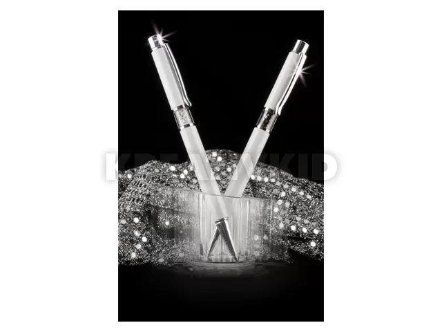 Golyóstoll, fehér, középen fehér SWAROVSKI® kristállyal töltve, 14cm, ART CRYSTELLA®