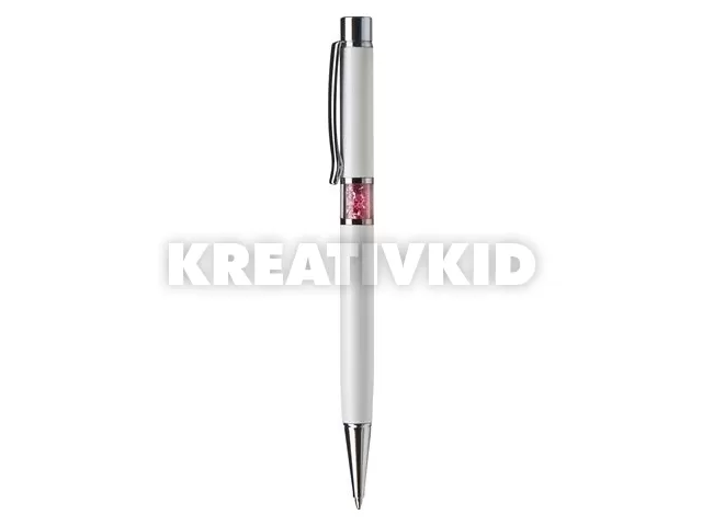 Golyóstoll, fehér, középen rózsaszín SWAROVSKI® kristállyal töltve, 14cm, ART CRYSTELLA®