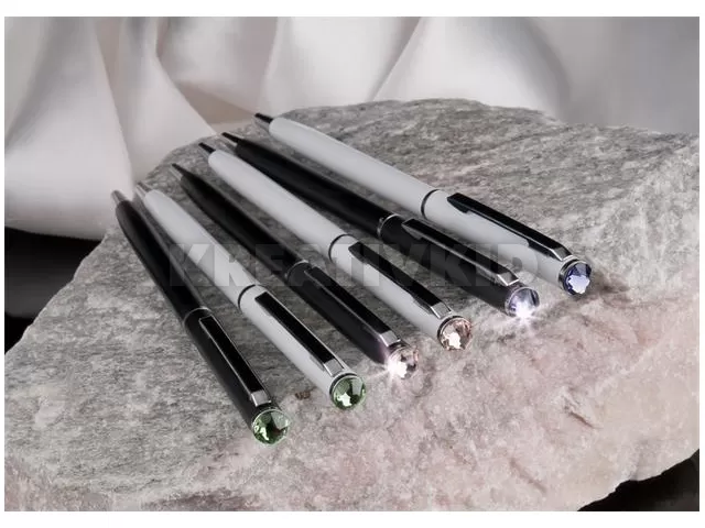 Golyóstoll, fehér "SLIM", peridot zöld SWAROVSKI® kristállyal, 13 cm, ART CRYSTELLA®