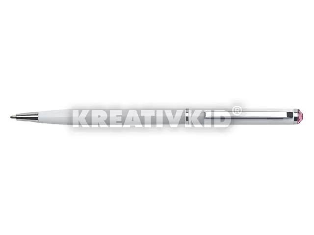 Golyóstoll, fehér "SLIM", rózsaszín SWAROVSKI® kristállyal, 13 cm, ART CRYSTELLA®