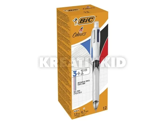 Golyóstoll, háromszínű, nyomósirónnal egyben, BIC "4 Colours