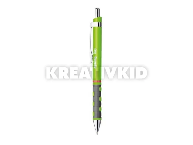 Golyóstoll, 0,8 mm, nyomógombos, neonzöld tolltest, rOtring "Tikky", kék