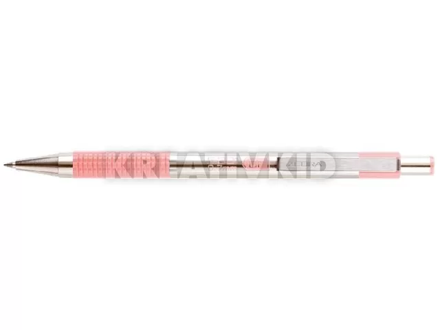 Golyóstoll, 0,24 mm, nyomógombos, rozsdamentes acél, pasztell rózsaszín tolltest, ZEBRA "F-301", kék