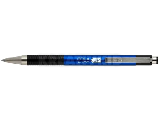 Golyóstoll, 0,24 mm, nyomógombos, kék tolltest, ZEBRA "F-301 A", kék