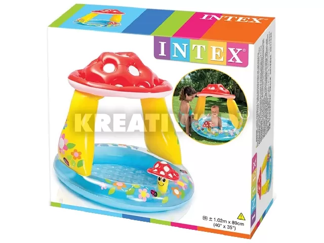 Már a legkisebbek is élvezhetik nyáron a hűsítő pancsolást! A Gomba kupolás bébimedence egy árnyékolóval felszerelt, PVC-ből készült gyerekmedence, amiben már a legkisebbek is hűsölhetnek. A gomba mintás árnyékoló megvédi a piciket a káros UV sugaraktól, a medencét biztonsági szelepen keresztül lehet felfújni, és kerti tömlőről lehet vízzel megtölteni. A Gomba kupolás bébimedence felfújt méretei: 102 x 89 cm.