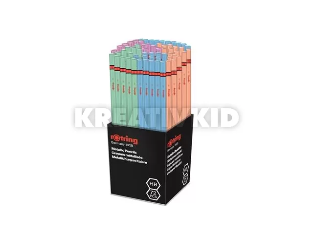 Grafitceruza display, HB, hatszögletű, ROTRING "METALLIC", vegyes színek