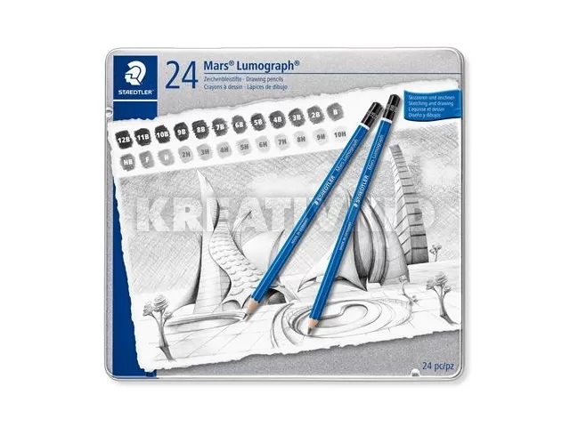 Grafitceruza készlet, fém doboz, hatszögletű, STAEDTLER "Mars® Lumograph® 100", 24 különböző keménység