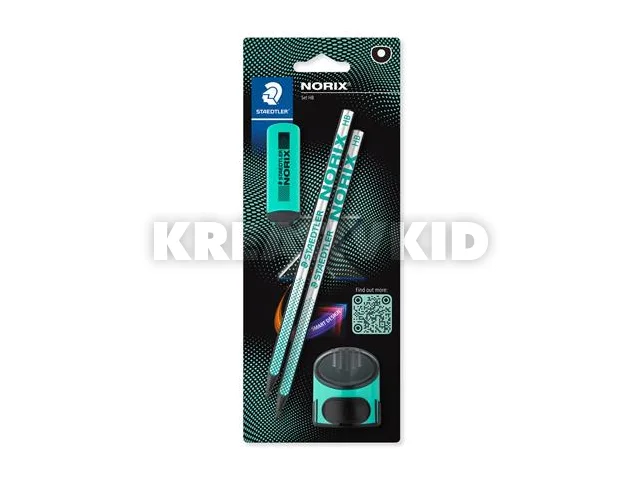 Grafitceruza készlet, hegyezővel, radírral, HB, STAEDTLER "Norix® 181", zöld