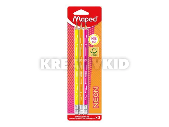 Grafitceruza radírral, HB, háromszögletű, MAPED "Black`Peps Neon", vegyes színek